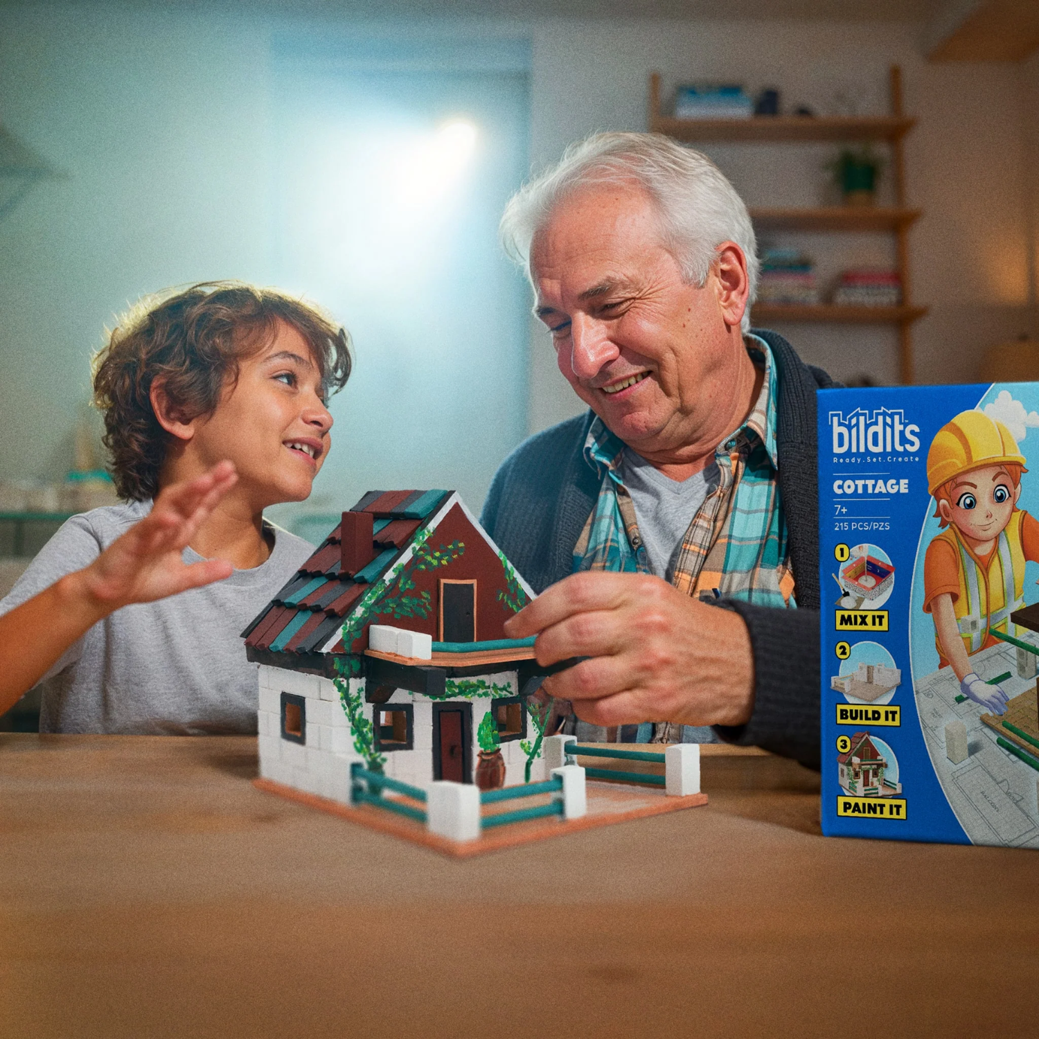 Build, assemble, and customize a charming countryside home with the BuilDits Cottage construction kit. This hands-on STEAM set lets young builders experience real construction techniques by mixing, building, and painting a detailed cottage model from the ground up.