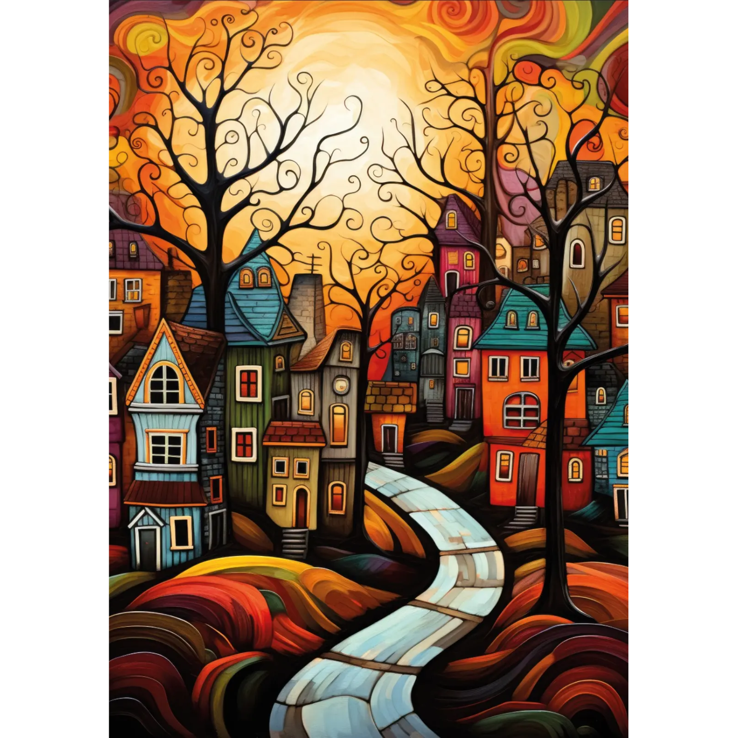 Dive into a vibrant and surreal cityscape with KS Gamesโ โUnbeat Cityโ, a 500-piece puzzle by David Fairchild. This striking artwork captures winding streets, glowing windows, and abstract shapes bathed in sunset hues โ a feast of creativity and movement that feels alive with energy.